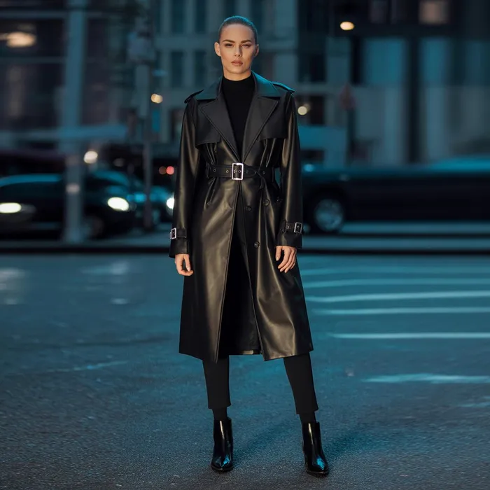 Trench coats work surprisingly well for evening events, especially in sleek or satin finishes.